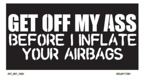 Get Off My Ass Before I Inflate Your Airbags. Made in USA. New Item. Buy in Quantity and Save!