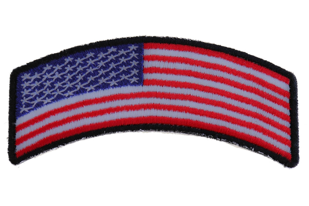 Rocker patches are designed with either a downward or upward arch so they can be placed at the top or bottom of a biker’s vest or jacket.  This American Flag Rocker Patch is perfect for attaching to the top of your clothing and is ideal for those who want to wear the American Flag with pride.