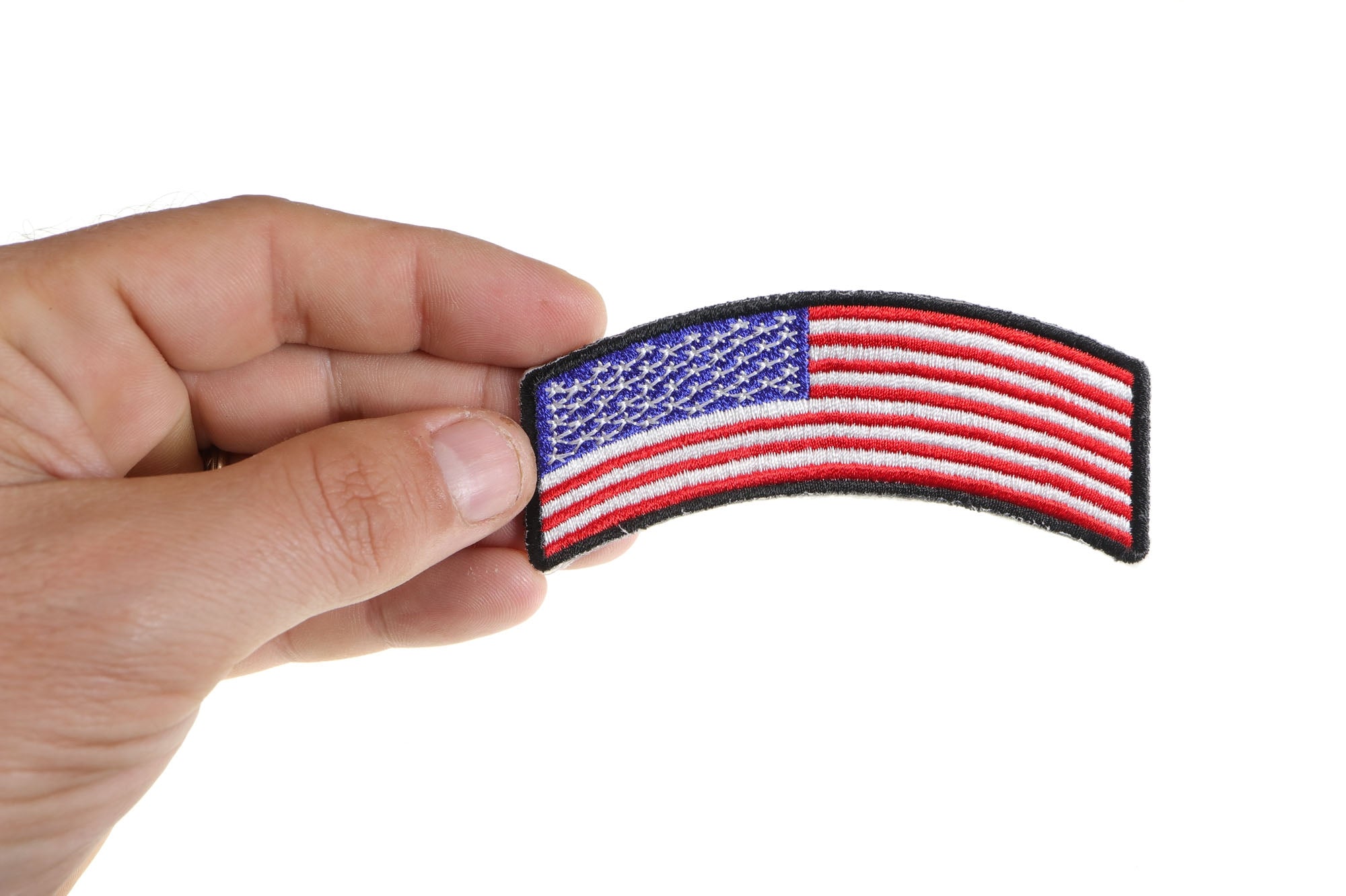 There are a number of different rocker patches out there.  These rockers are specifically designed to fit on the sleeve of your jacket.  That's why they're curved.  A regular rectangular patch doesn't quite look right on the upper shoulder.  They're curved so they better fit the shape of the shoulder.  In the Flag Patches category, you'll find an American Flag Rocker Patch.  It's a standard U.S. flag except it's slightly arced.  It's as correct as it can be it has 13 stripes and 50 stars, just like the actual flag.