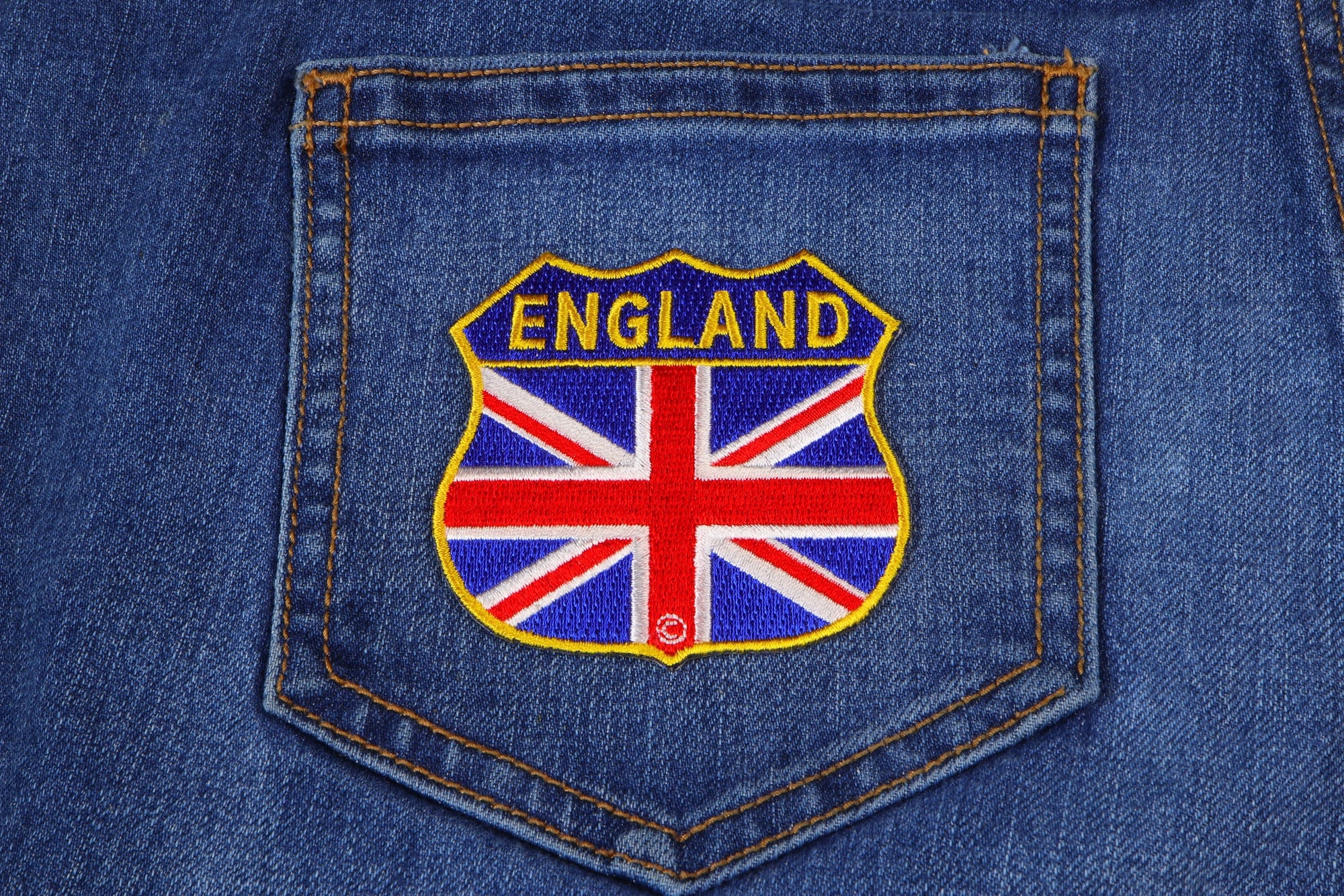 England Shield Patch. Great Britain Flag. Embroidered with heat seal backing for easy application Measuring Size: 2.75x2.75 inches.