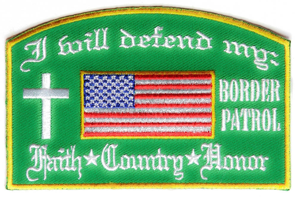 • I Will Defend My Faith Country Honor Border Patrol Patch In Green Description: