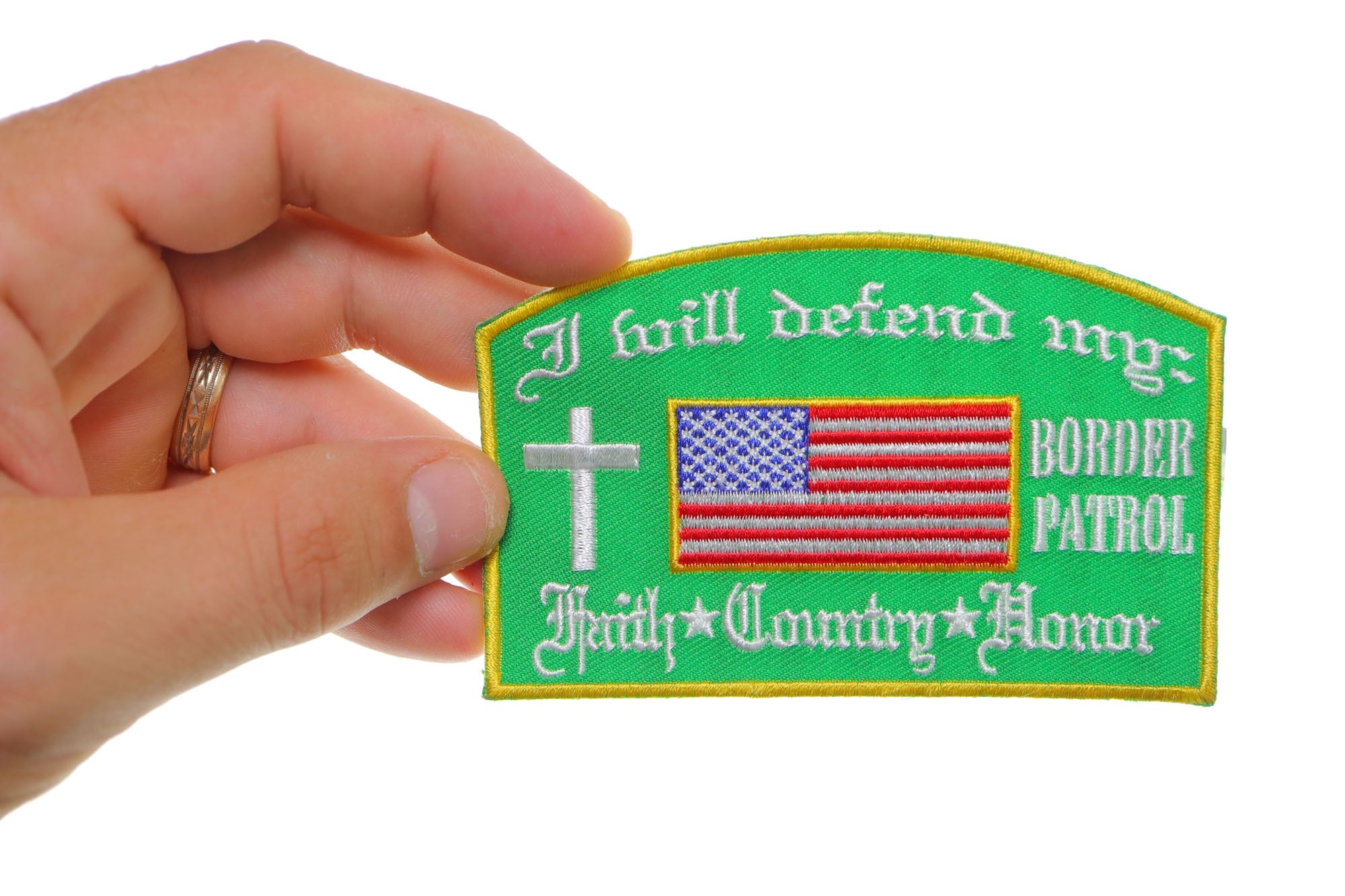 I Will Defend My Faith Country Honor Border Patrol Patch In Green - 4x2.6 inch