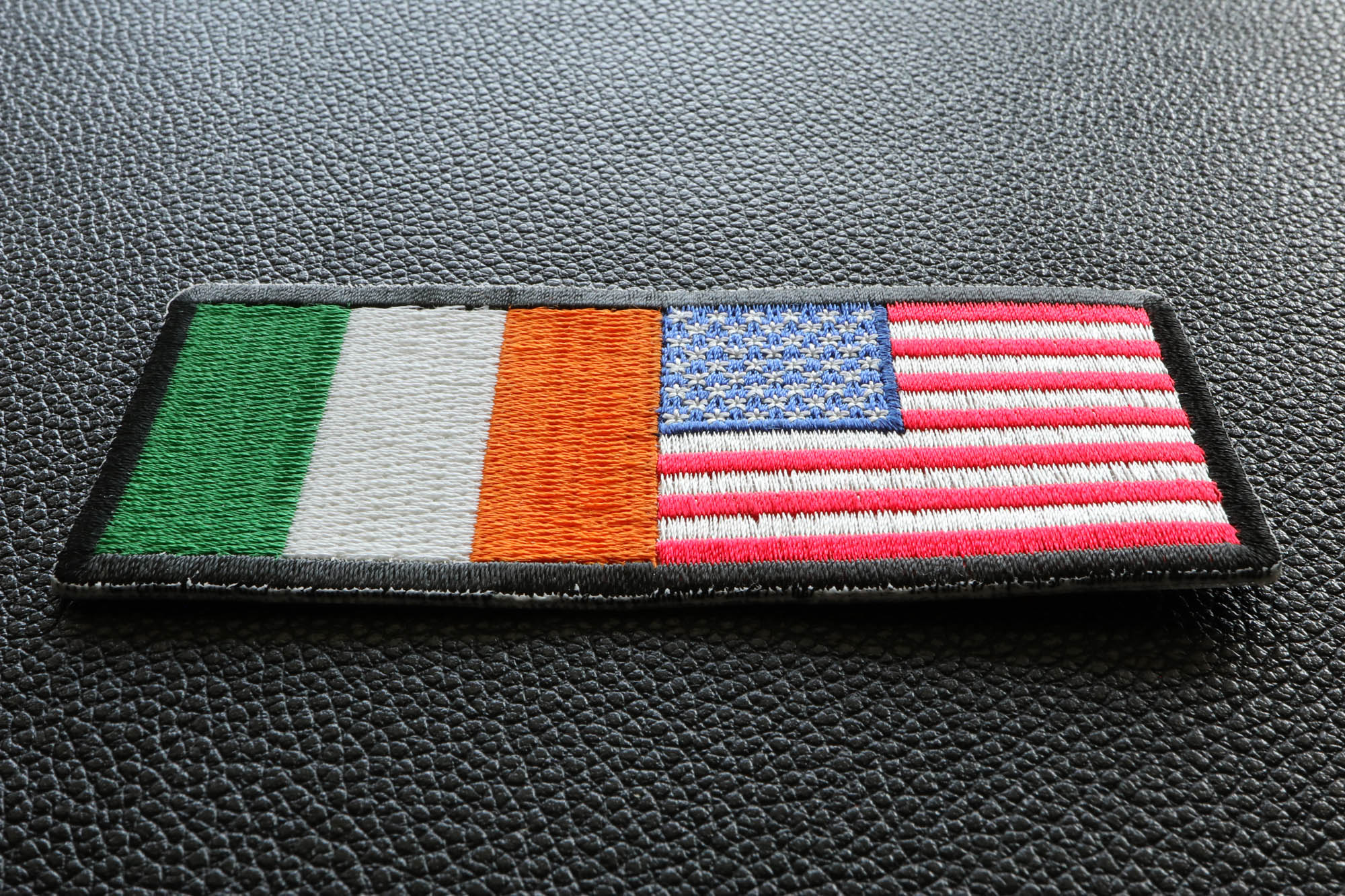 Irish American Flag Iron on Patch measures 4x1.75 inches and is embroidered in Black / White / Red / Blue / Green. You can sew or iron on this patch to your clothing. Never iron on patches to leather or nylon material. Need a custom patch? We can make them given you want at least 20 pieces. Want to resell our patches? Get a wholesale account and buy patches wholesale from The Cheap Place.