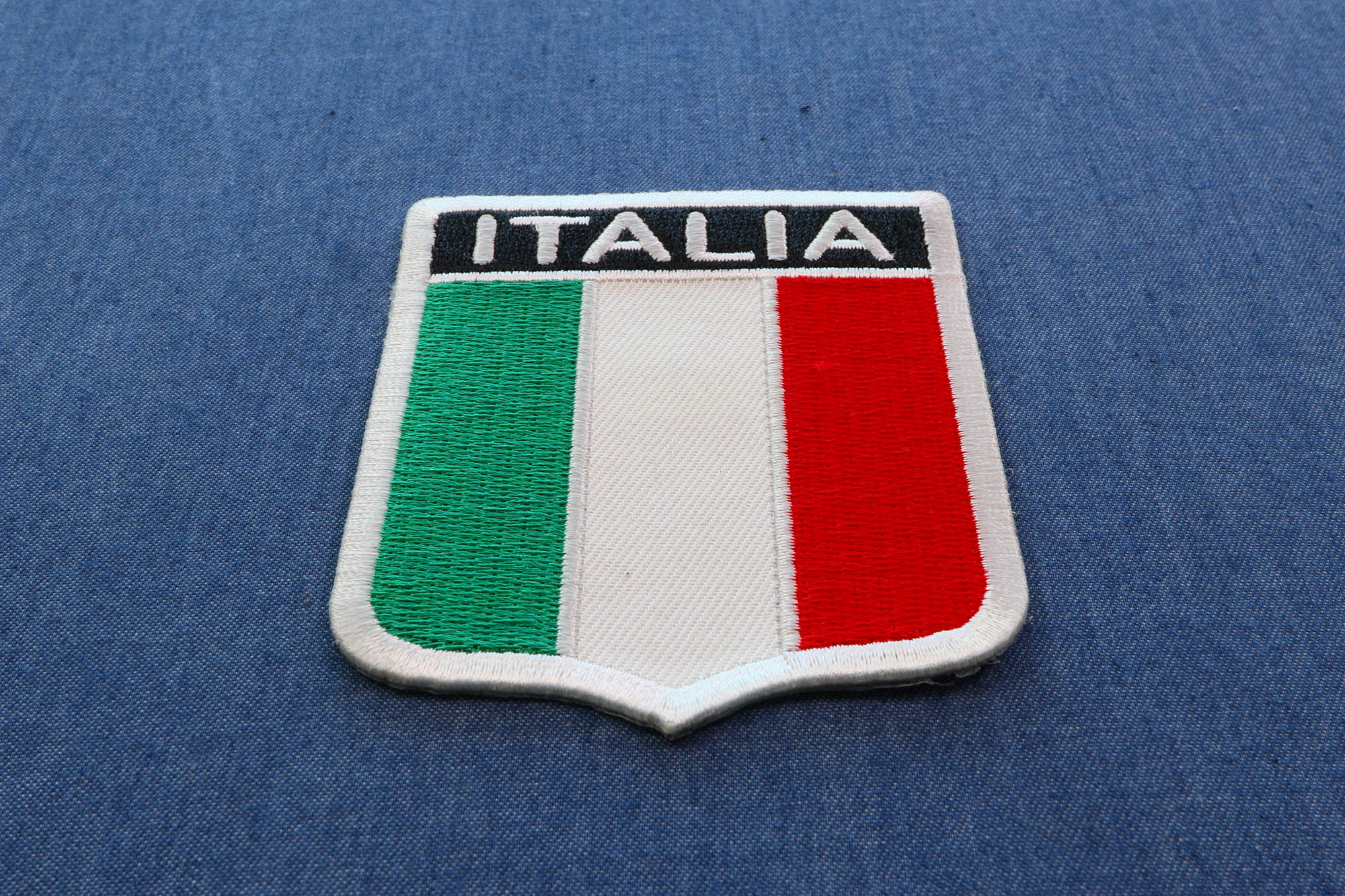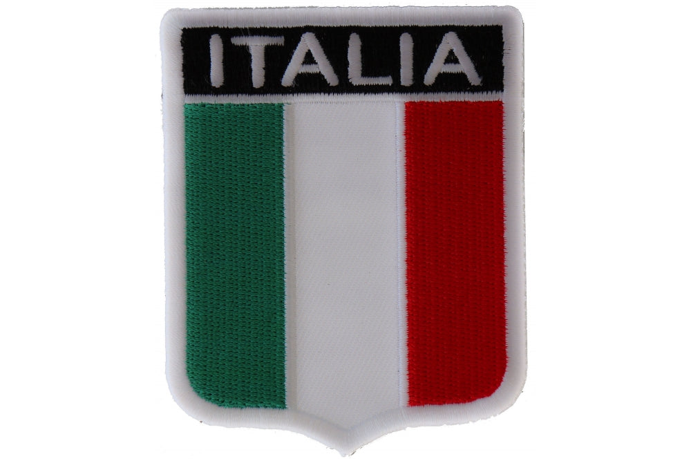 Italia Shield Embroidered Patch. Measuring Size: 2.5X3.25 Inch
