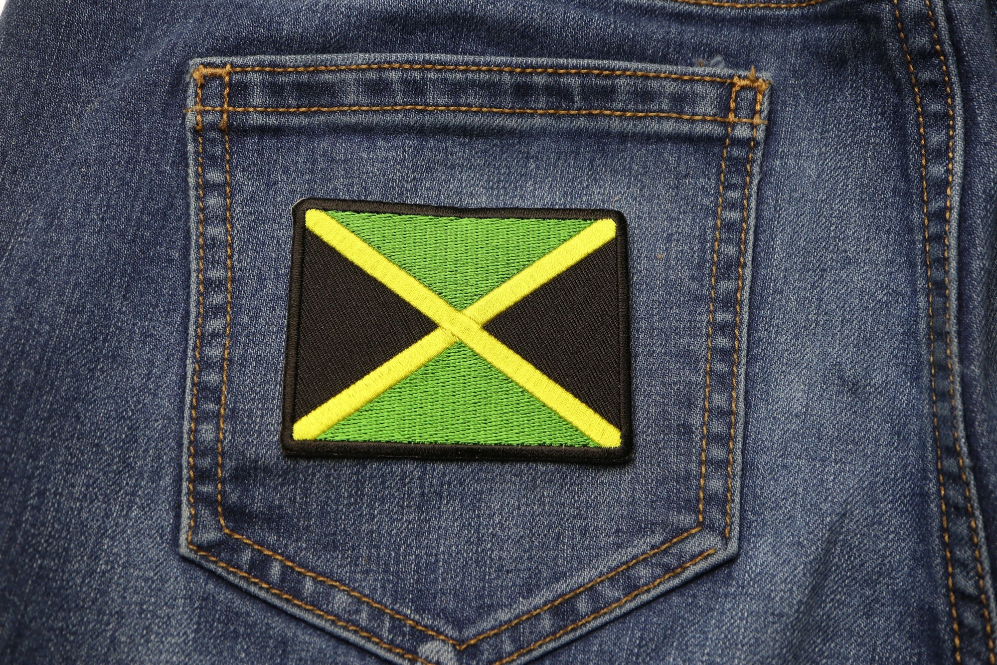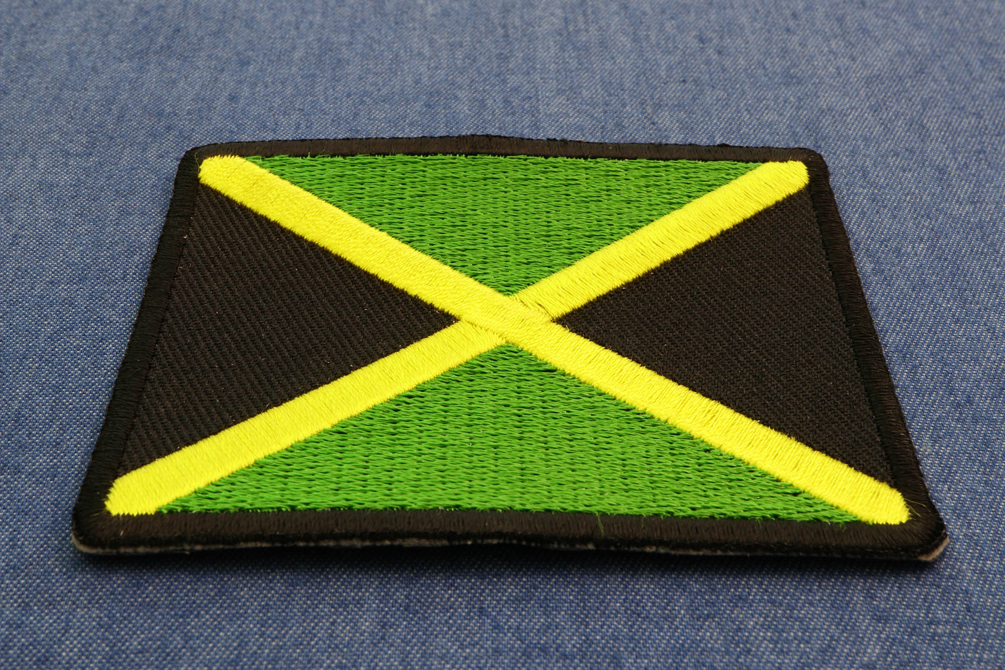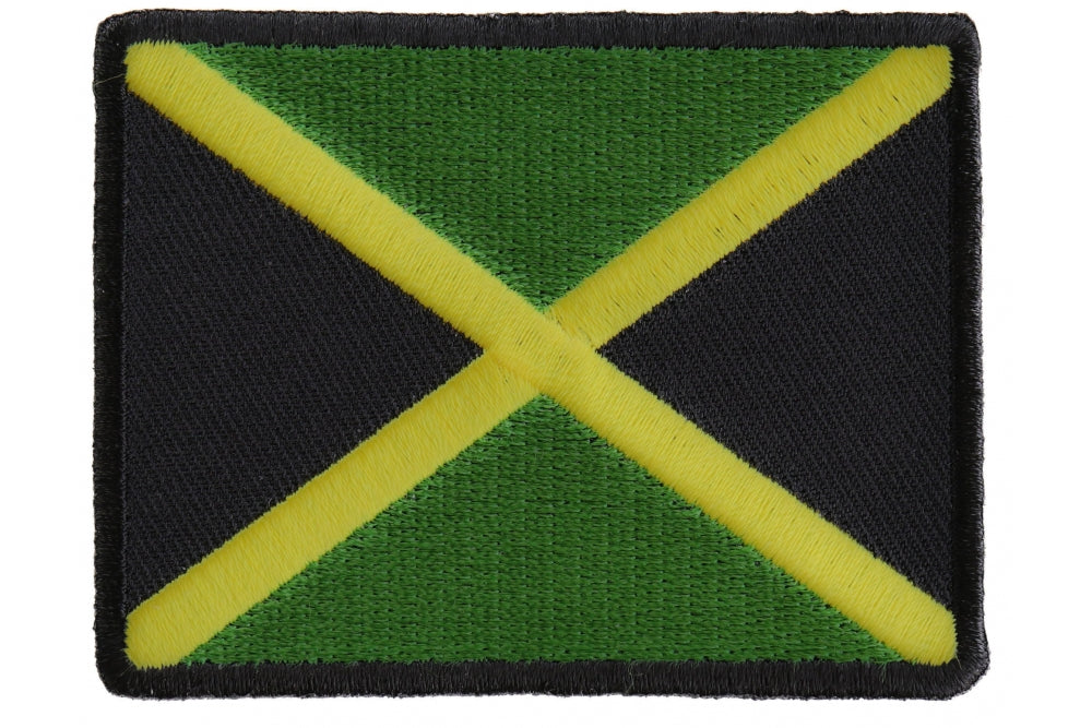 The Jamaican Flag Small Patch Small Embroidered Patch measures 3x2.5 inch. Features colors Black / Yellow / Green. Iron on or Sew on Application.
