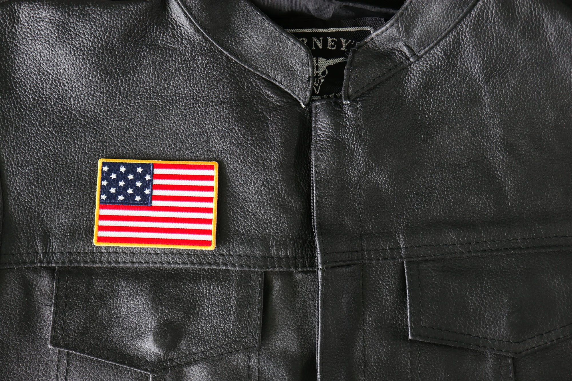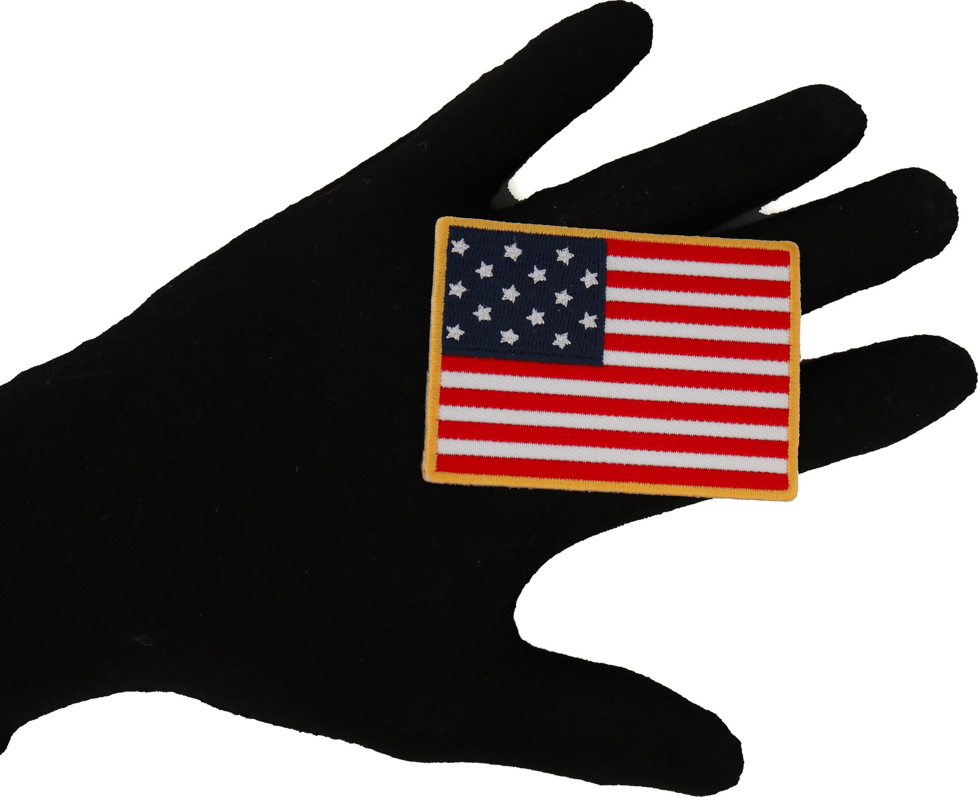 Historical Star Spangled Banner Flag Iron on Patch measures 3x2.2 inches and is Embroidered in Yellow / White / Red / Blue. The Small can be sewn on or ironed on to clothing. The Historical Star Spangled Banner Flag Iron on Patch features plastic iron on backing and clean laser cut embroidered borders.