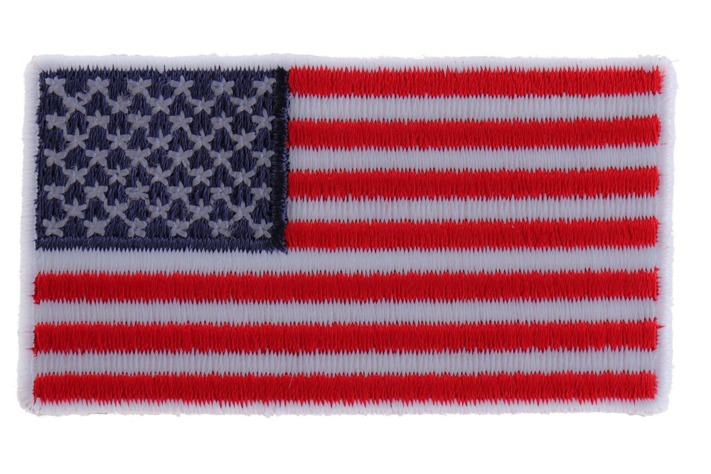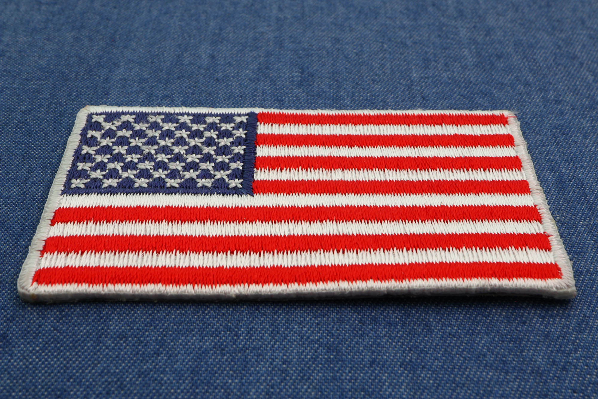 US Flag Patch White Border 2.5 inches measures 2.5x1.4 inches and is Embroidered in Red / White / Blue. The Small Patch can be sewn on or ironed on to clothing such as Denim or Leather Jackets, Vests, Hats, Back Packs, Shirts. Features plastic backing and embroidered die cut borders.