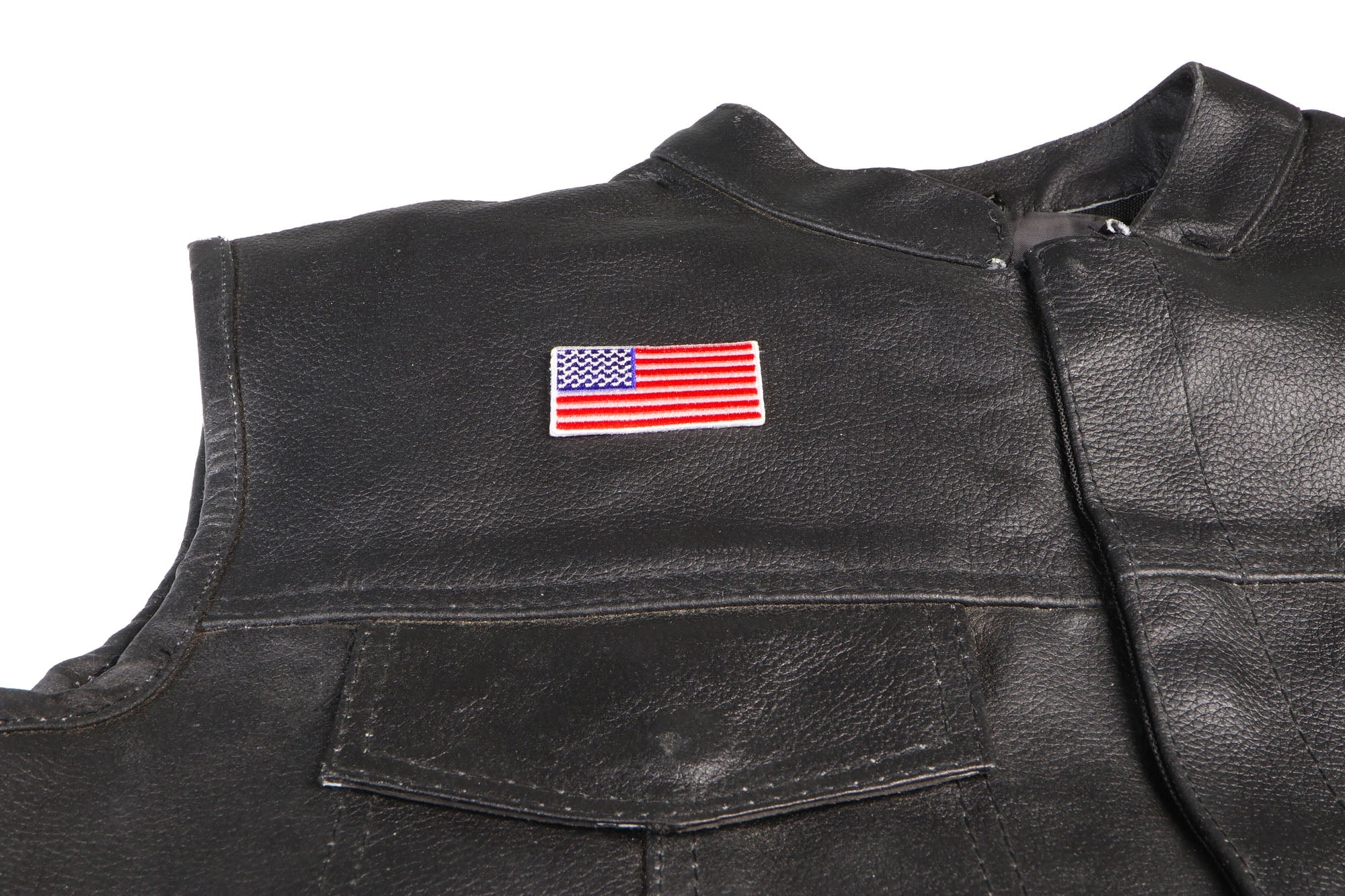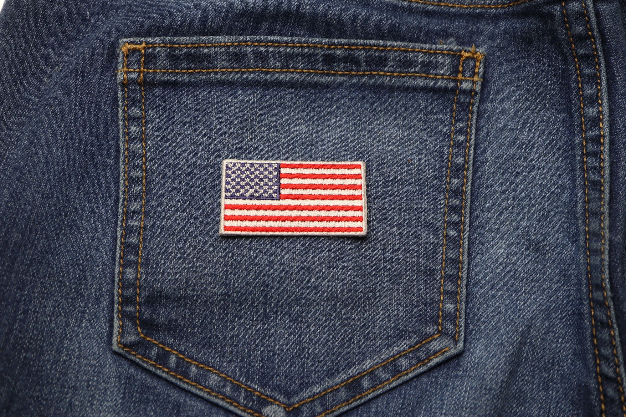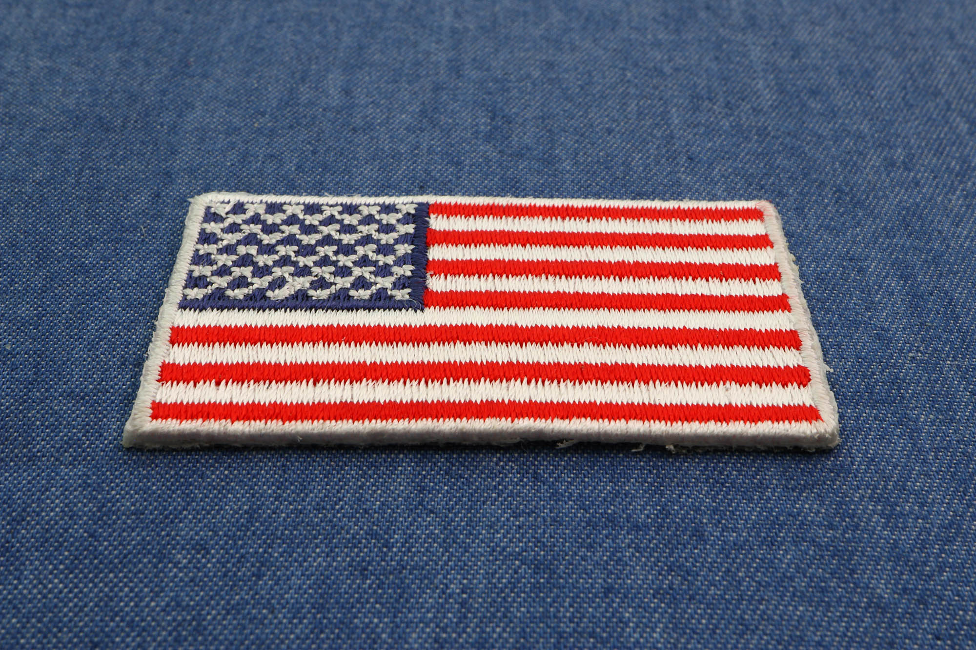 US Flag Patch White Border 2 inch measures 2x1.1 inches and is Embroidered in Red / White / Blue. The Small Patch can be sewn on or ironed on to clothing such as Denim or Leather Jackets, Vests, Hats, Back Packs, Shirts. Features plastic backing and embroidered die cut borders.