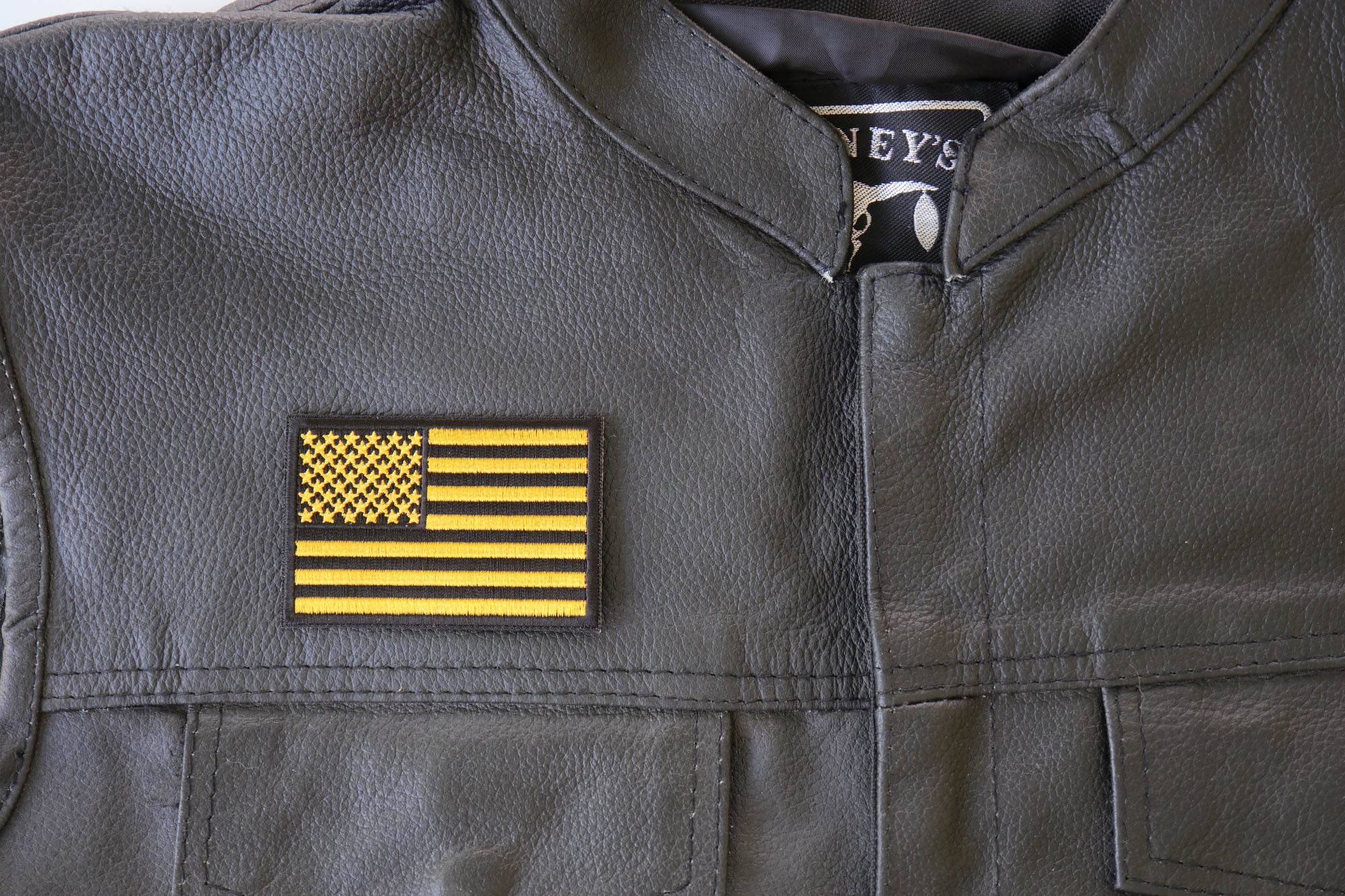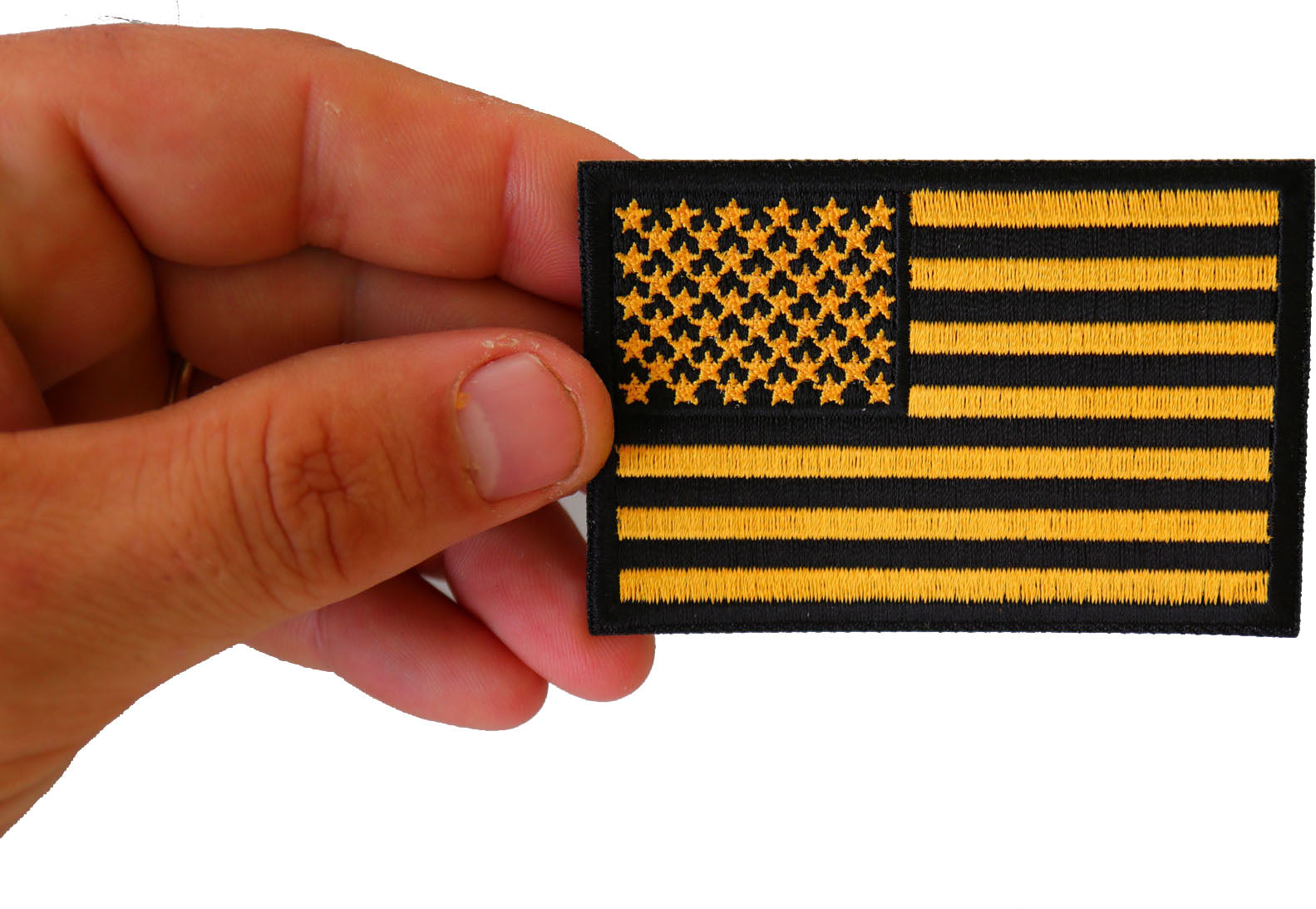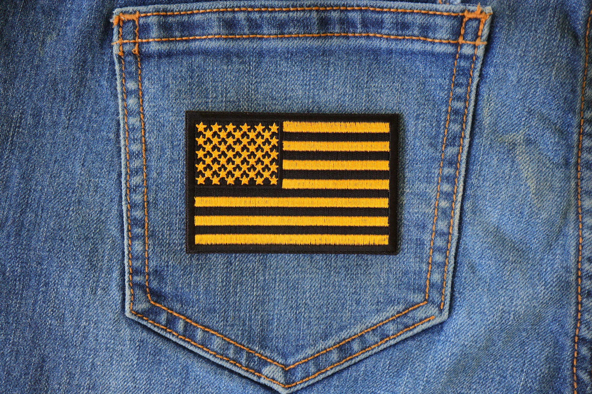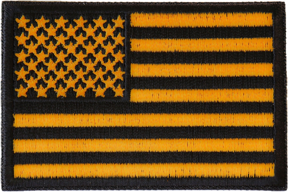 Yellow Black American Flag patch is a small embroidered emblem measuring 3x2 inch. Apply to your clothing by either ironing on or sewing it on. Please do not iron on patches to leather jackets, vests or bags or nylon material. The patch features a nice embroidered die cut border making it easy to sew on when ironing on is not an option. Please remember using a household iron will not produce professional results. Both heat and pressure is required to adhere an iron on patch properly to your clothing.