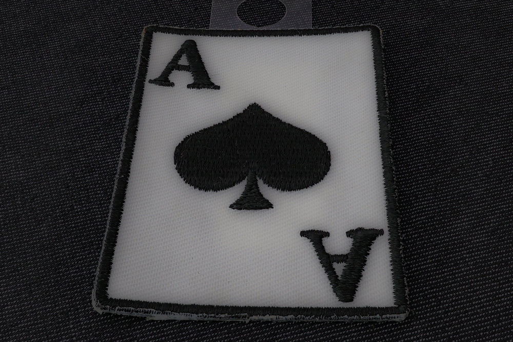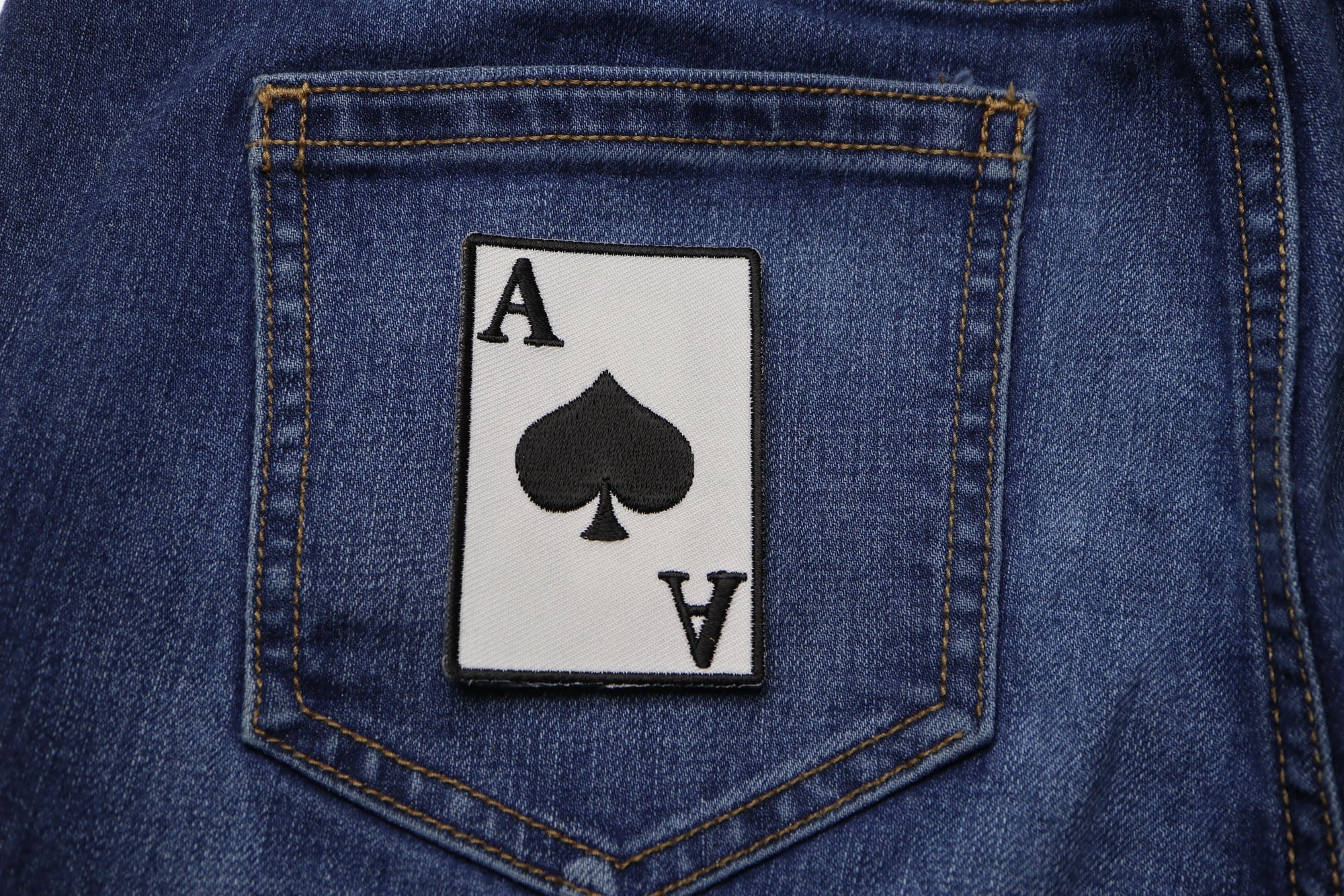 • The Ace of Spades patch measures 2x3 inches and is embroidered in black over white.