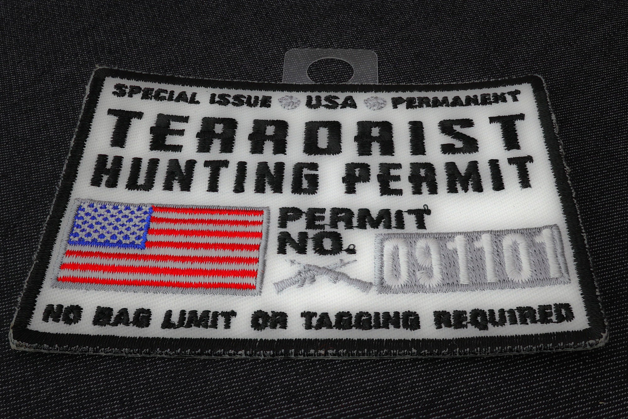 Terrorist Hunting Permit White Patch - 3.75x3 inch