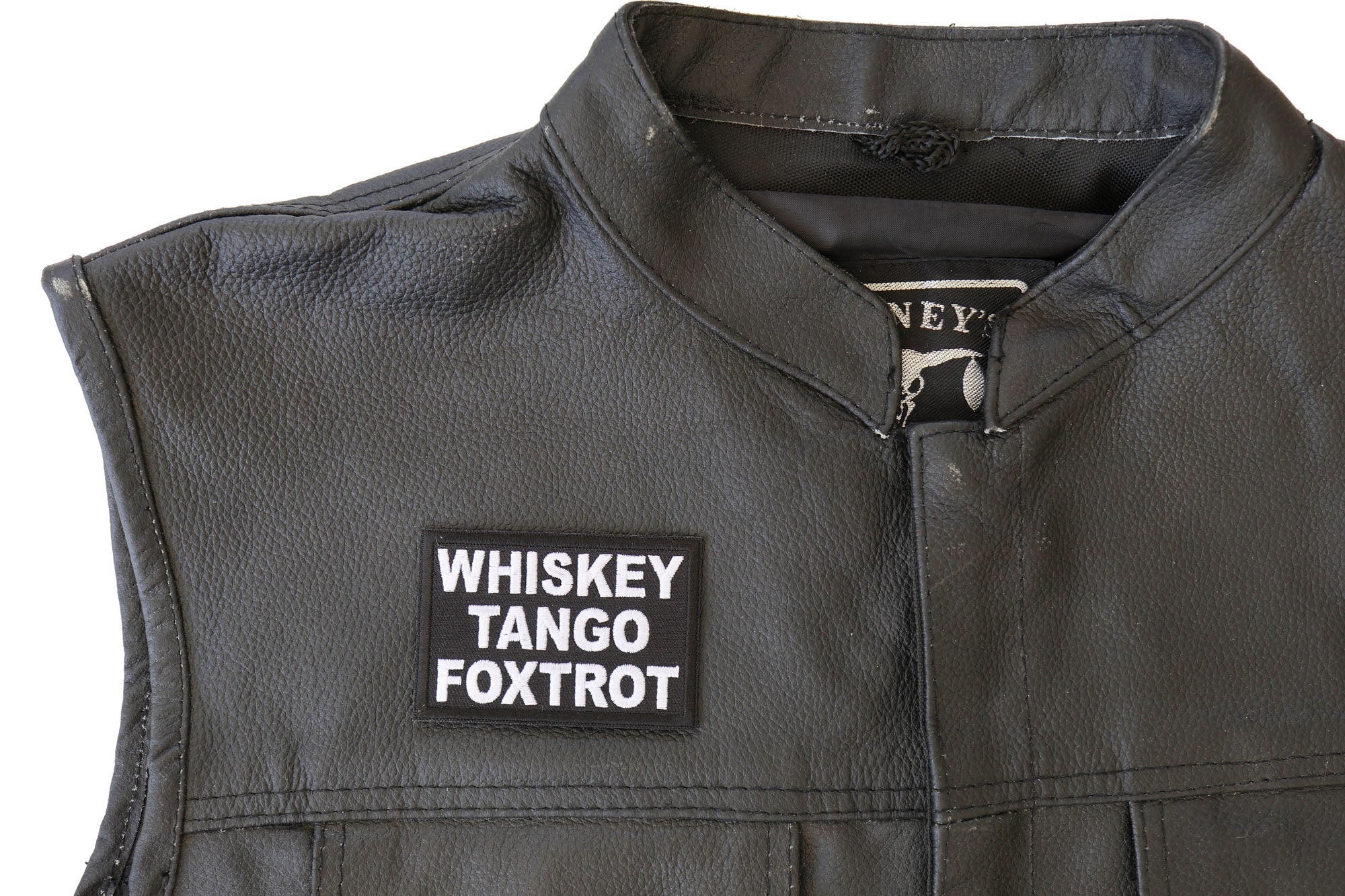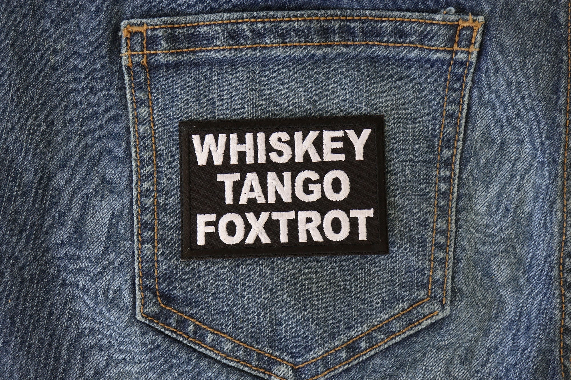 Whiskey Tango Foxtrot WTF Patch measures 3x2 inches and is Embroidered in Black / White. The Small Patch can be sewn on or ironed on to clothing such as Denim or Leather Jackets, Vests, Hats, Back Packs, Shirts. Features plastic backing and embroidered die cut borders.