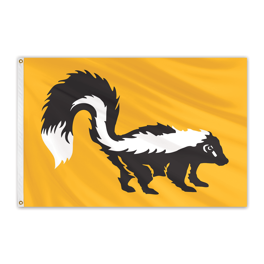 This bright yellow flag features a skunk. Perfect gag gift, white elephant gift, or simply a prank flag!