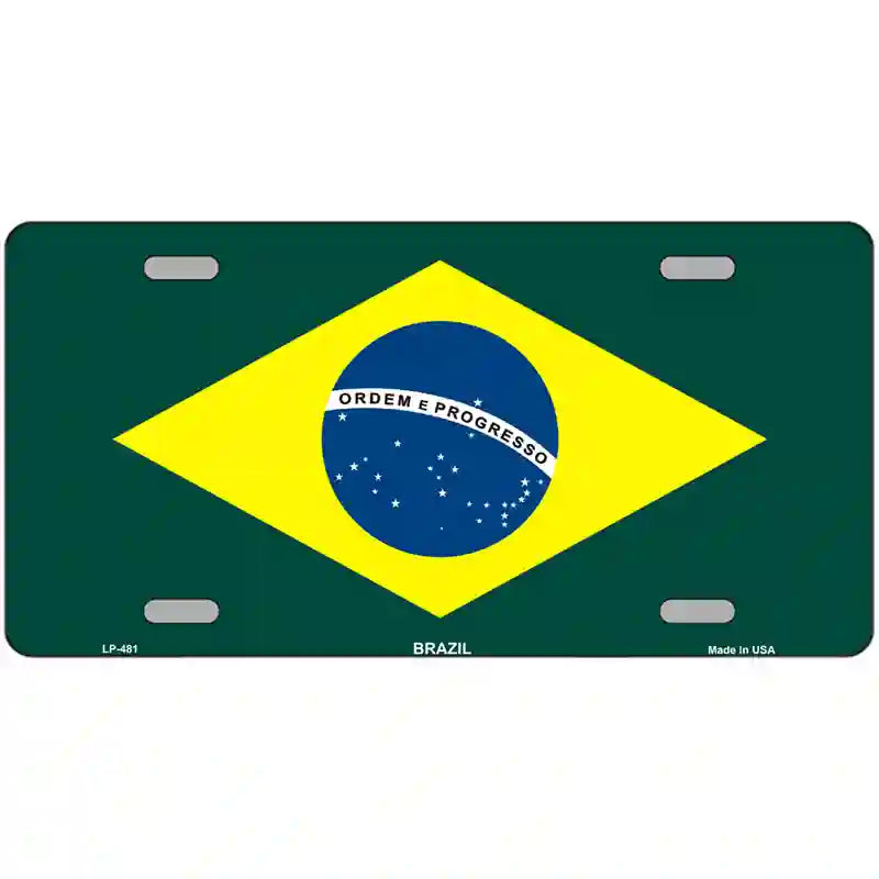 Brazil Flag Metal License Plate. Offering our unique license plate designs in a 12" Standard Automotive License Plate, 7" Motorcycle/ATV Plate, 6" Bike Plate, 4" Miniature License Plate and 24" large license plate garage sign. The 12" x 6" License Plate is made out of a .032 grade aluminum and the other sizes are made out of a .025 grade aluminum, which make them lightweight and durable. All license plates will have pre-drilled holes making these decorative license plates easy to display. Choose between the sizes offered or add all to your cart to show off your design in different ways. These items are proudly made here in the USA. Check out our other different sizes with the same artwork on them in our Key Chains, Rectangle Magnets, Dog Tag Necklaces, and Hat Pins.