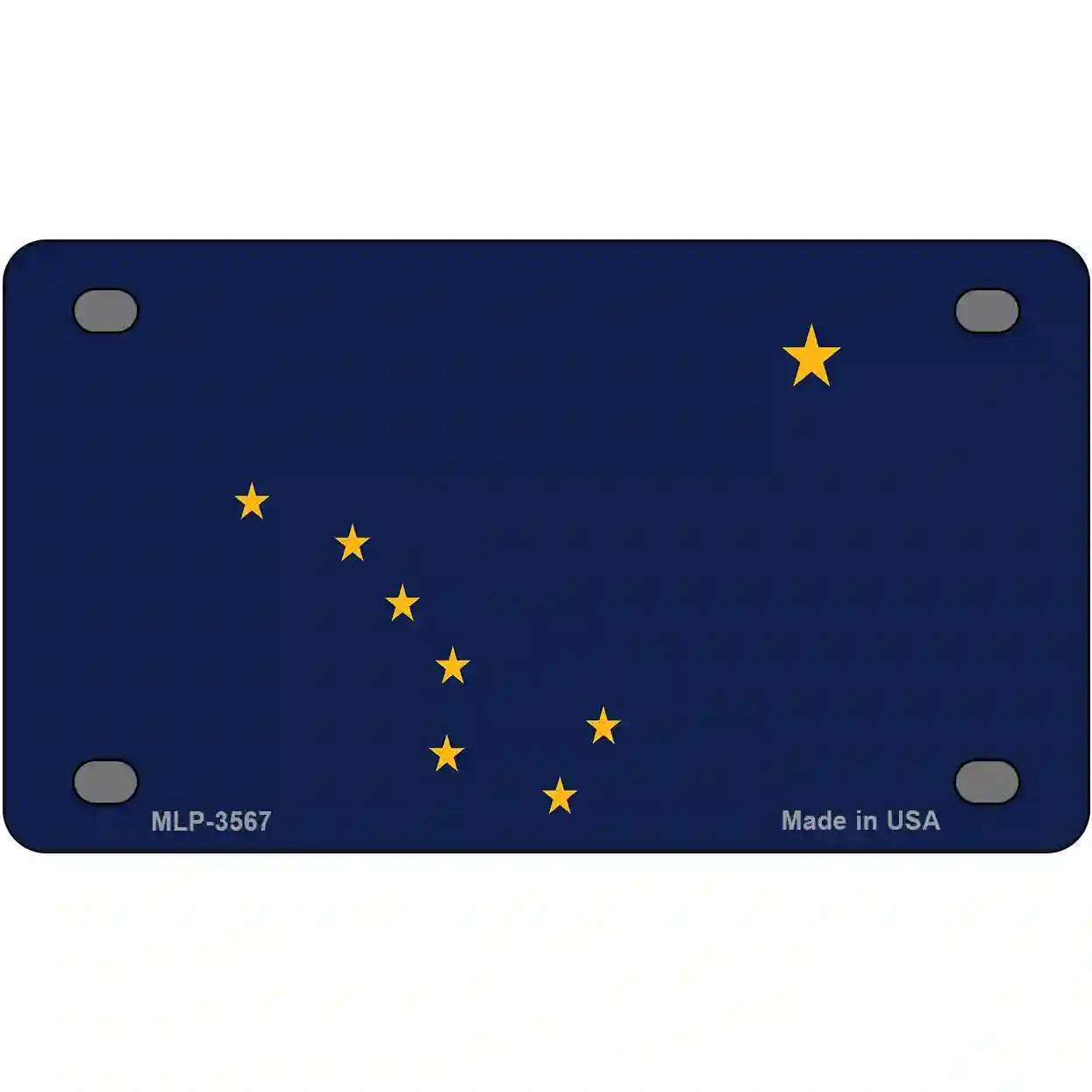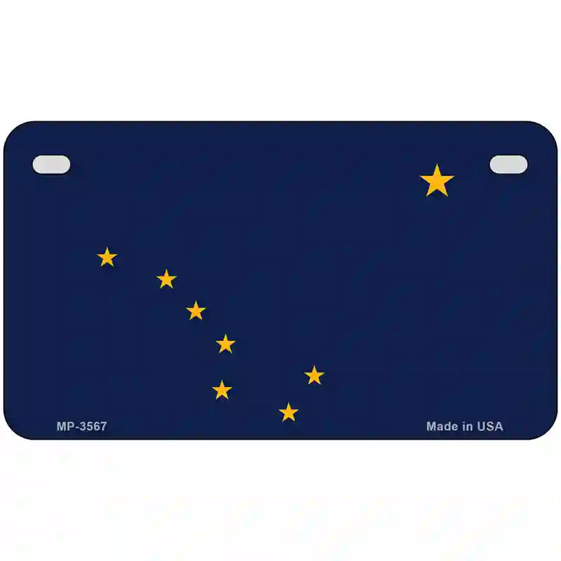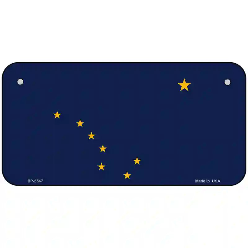 Alaska State Flag Metal License Plate. Offering our unique license plate designs in a 12" Standard Automotive License Plate, 7" Motorcycle/ATV Plate, 6" Bike Plate, 4" Miniature License Plate and 24" large license plate garage sign. The 12" x 6" License Plate is made out of a .032 grade aluminum and the other sizes are made out of a .025 grade aluminum, which make them lightweight and durable. All license plates will have pre-drilled holes making these decorative license plates easy to display. Choose between the sizes offered or add all to your cart to show off your design in different ways. These items are proudly made here in the USA. Check out our other different sizes with the same artwork on them in our Key Chains, Rectangle Magnets, Dog Tag Necklaces, and Hat Pins.