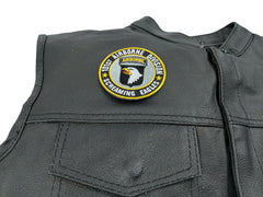 101st Airborne Division Patch Screaming Eagles measures 3x3 inches and is Embroidered in Black / Gray / Yellow / White. The Small Patch can be sewn on or ironed on to clothing such as Denim or Leather Jackets, Vests, Hats, Back Packs, Shirts. Features plastic backing and embroidered die cut borders.