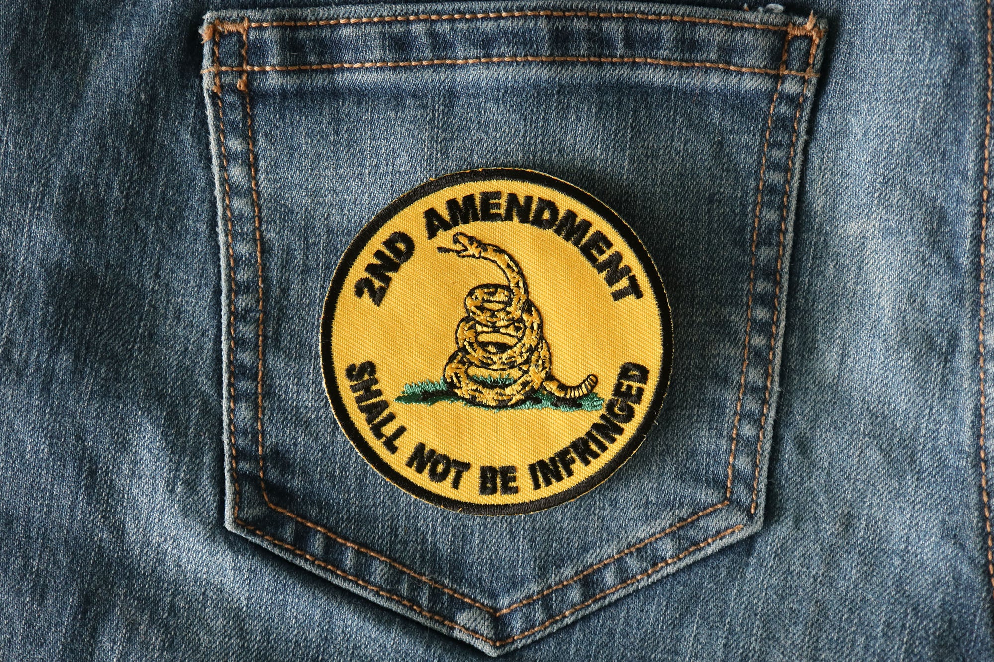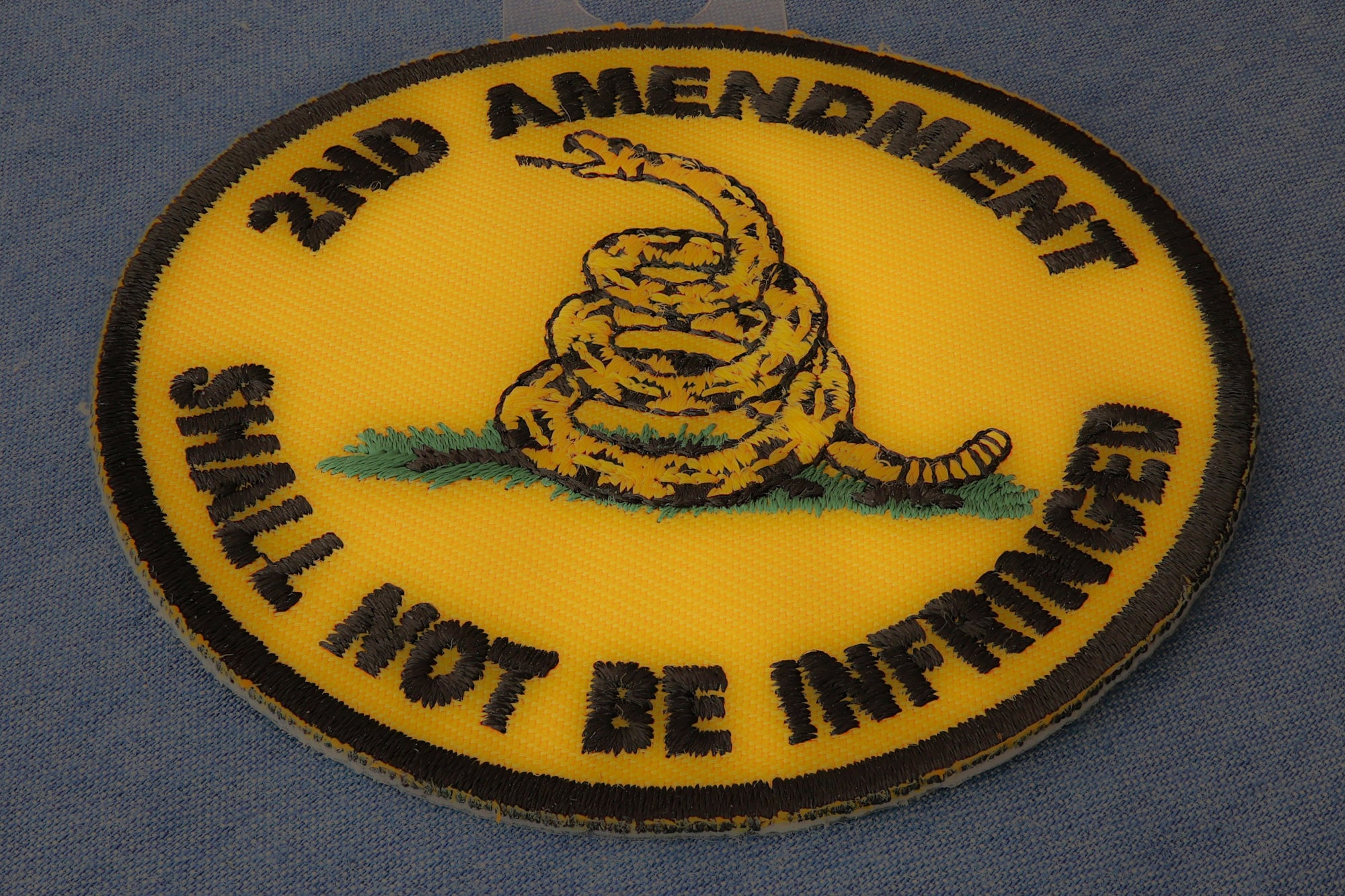 2nd Amendment Shall Not Be Infringed Round Patch measures 3x3 inches and is Embroidered in Black / Yellow. The Small can be sewn on or ironed on to clothing. The 2nd Amendment Shall Not Be Infringed Round Patch features plastic iron on backing and clean laser cut embroidered borders.