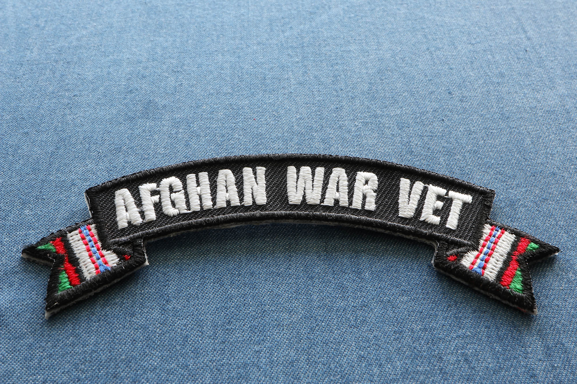 • Afghan War Vet Rocker Patch measures 4x1.5 inches. The tips of this small rocker patch has the ribbon colors of the Afghan War Campaign.