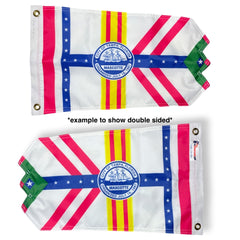 Custom Made of durable and long-lasting nylon fabric and solid brass grommets, this flag lasts much longer than our Standard flag. You won't find nylon flags with higher tensile and tear strength. It has excellent strength retention under UV exposure, and high resistance to UV fading. The colors are deep, bright, and last over time due to the aniline dye process. They have better wash-fastness and light-fastness than nylons of similar fabric construction. One inch double edge fold around flag, with four rows of stitching on the fly edge. There reinforced stitching at the top and bottom of the fly edge of the flag.