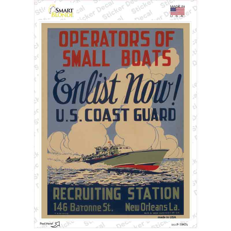 Enlist Now Coast Guard Vintage Poster Novelty Rectangle Sticker Decal