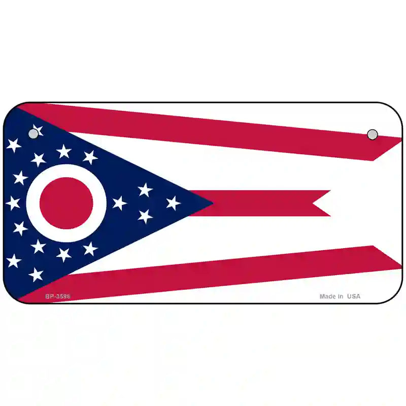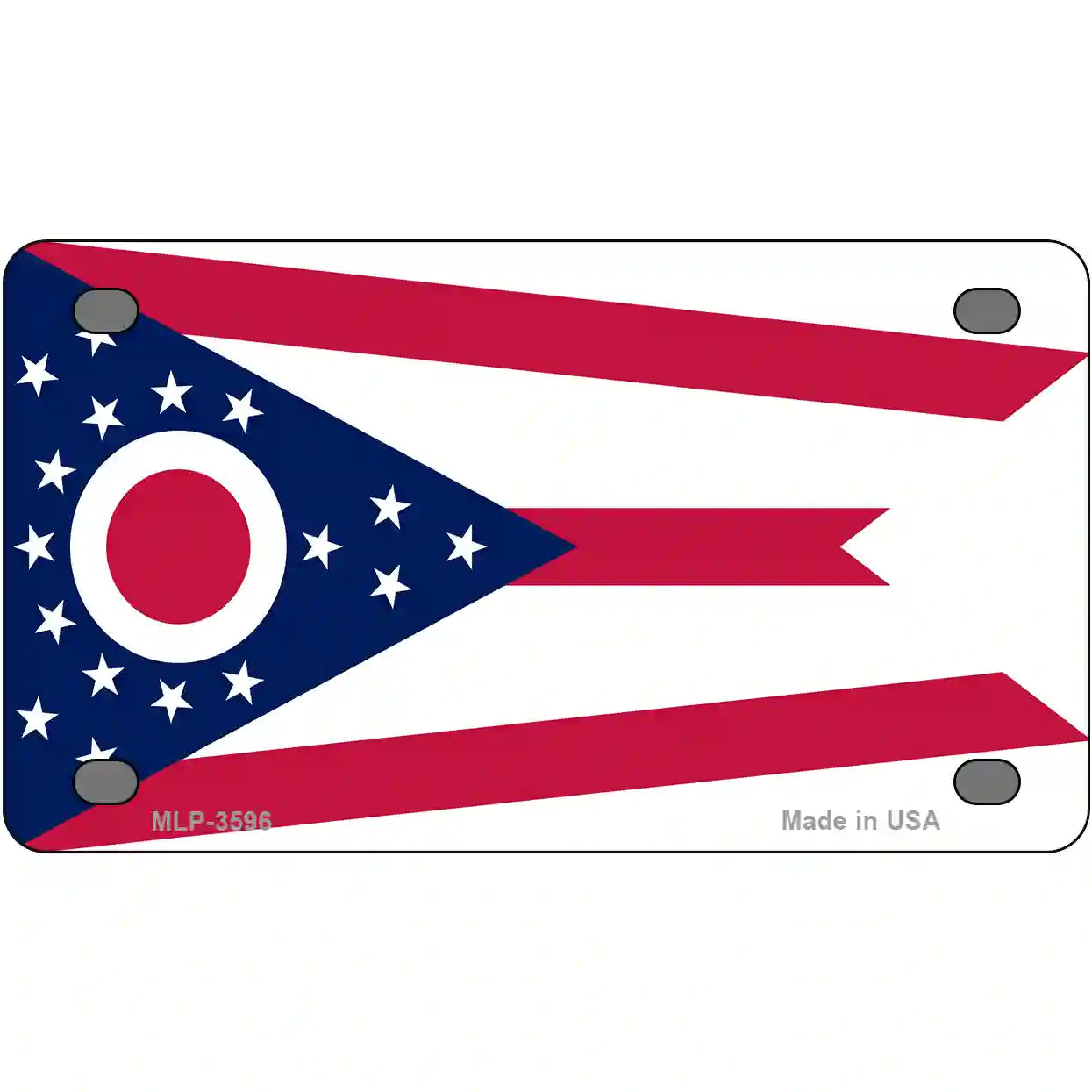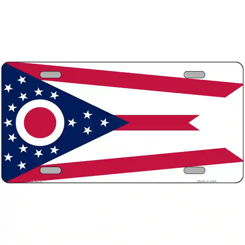 Ohio State Flag Metal License Plate. Offering our unique license plate designs in a 12" Standard Automotive License Plate, 7" Motorcycle/ATV Plate, 6" Bike Plate, 4" Miniature License Plate and 24" large license plate garage sign. The 12" x 6" License Plate is made out of a .032 grade aluminum and the other sizes are made out of a .025 grade aluminum, which make them lightweight and durable. All license plates will have pre-drilled holes making these decorative license plates easy to display. Choose between the sizes offered or add all to your cart to show off your design in different ways. These items are proudly made here in the USA. Check out our other different sizes with the same artwork on them in our Key Chains, Rectangle Magnets, Dog Tag Necklaces, and Hat Pins.