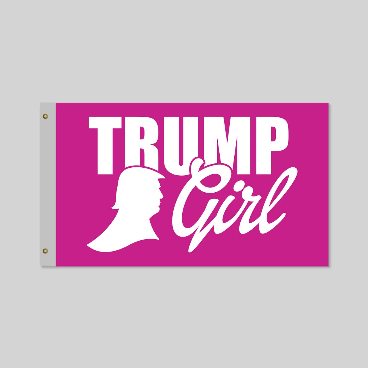 Hand made in USA. Only available here. Double or Single Sided Dacron. In Stock. LARGE from 12x18 inch to 15x20 feet TRUMP GIRL FLAG for sale - Outdoor. Flagpole or Boat Flag. 2x3 3x5 4x6 5x8 6x10 Jumbo 8x12 10x15 12x18 15x20 Stadium. All are available in double sided. 8x10 or larger have rope and thimble.