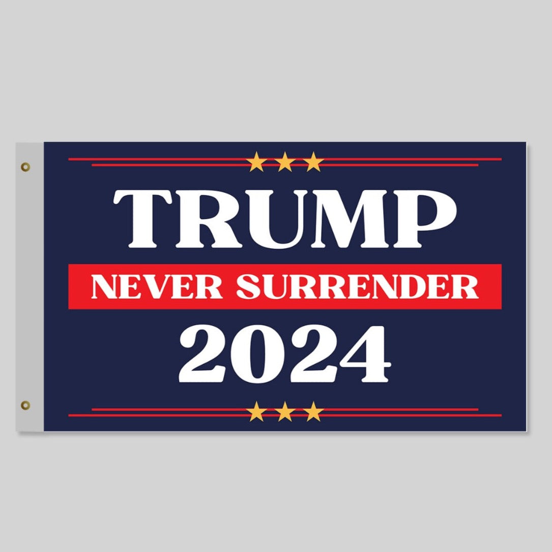 This Trump Never Surrender flag is a novelty flag and not an endorsement.