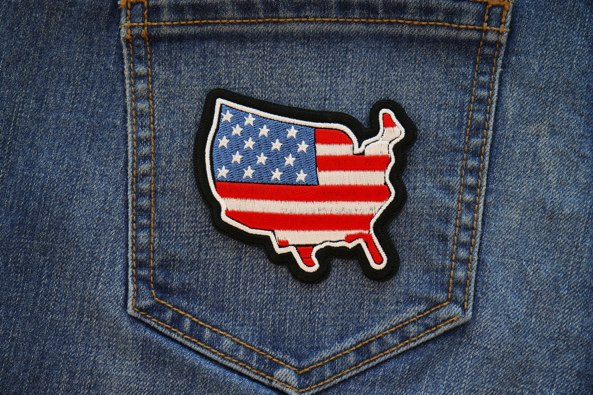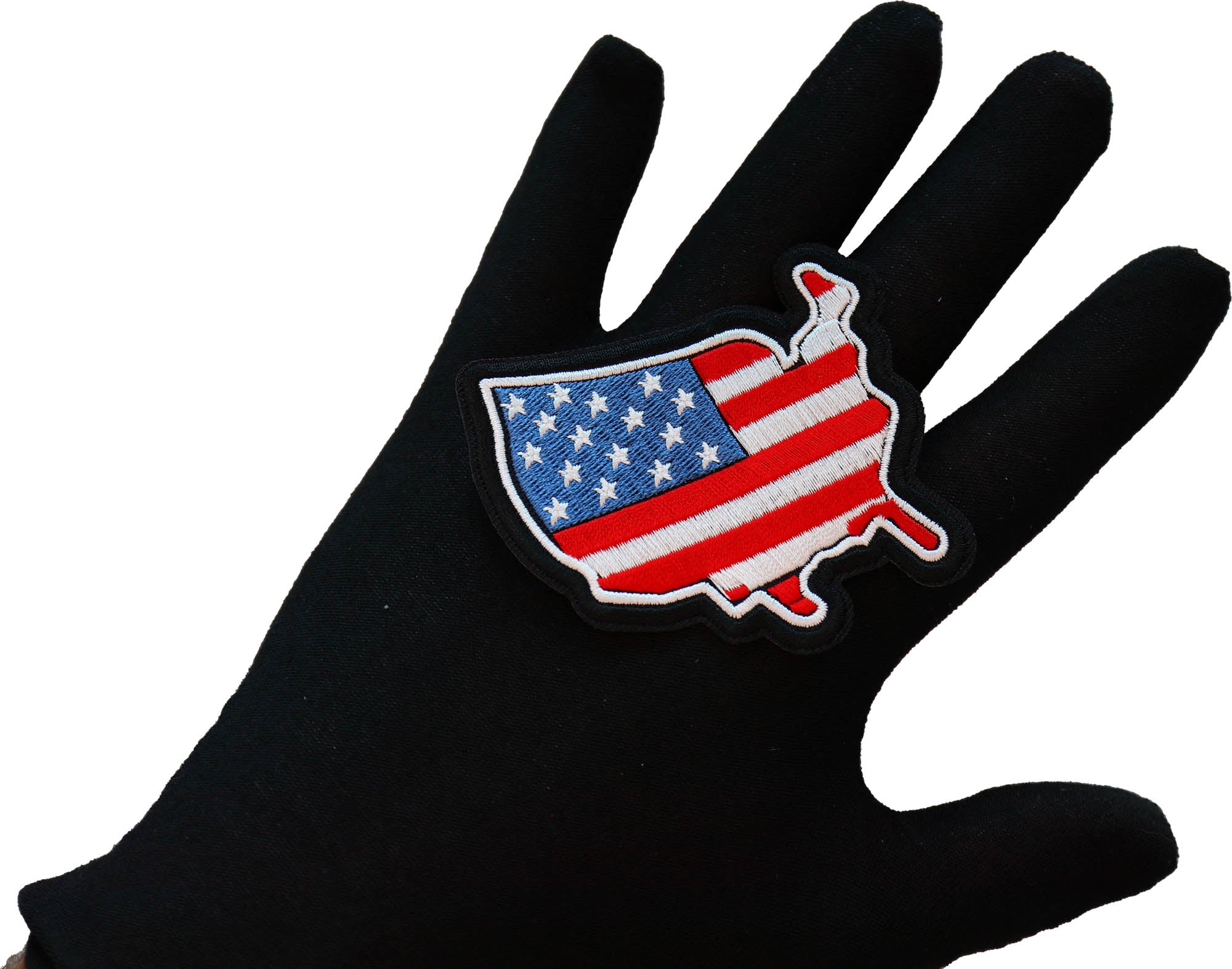 USA Patriotic Patch Embroidered measures 3x2.75 inches and is Embroidered in Black / Blue / Red / White. The patch can be sewn on to Leather Biker Jackets, Vests or Chaps. The patch can also be ironed on to Shirts, Hats or Denim material such as Jeans. Features plastic iron on backing and clean laser cut embroidered borders. Japanese made iron on glue requires temperature between 270-290 Degrees Fahrenheit. Use a heat press for 30 seconds to adhere the patch permanently to your clothing. Using a regular household iron will probably not be as permanent as one hopes. If possible we recommend you sew on your patches for a more durable application. Never iron on patches to Leather or Nylon materials.